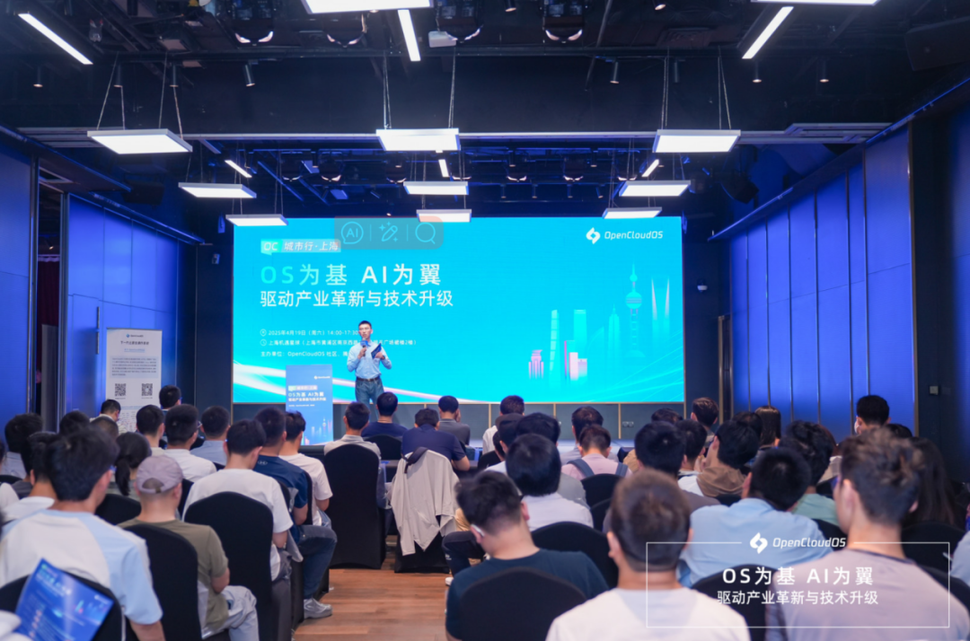 2025年4月19日,由OpenCloudOS社区与腾讯云联合主办的OC城市行·上海站“OS为基,AI为翼:驱动产业革新与技术升级”技术会议在上海机遇星球成功举办。会议采用线上线下联动形式,吸引了近百位AI行业及泛互企业CTO、技术负责人等核心决策者参会,线上观看人次超5万。在数字化转型加速、AI技术全面渗透产业的大背景下,本次会议聚焦操作系统与人工智能技术的深度融合,围绕算力优化、安全防护、大模型推理、多模态知识管理等前沿议题展开深度探讨。