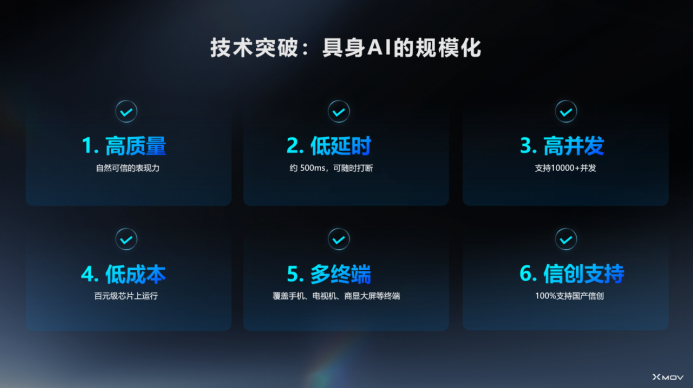 最终,魔珐星云不仅在模型层(文生3D多模态)实现了语义到身体语言的突破,更在系统层(云–端架构)完成了性能、成本与延迟的协同创新。这一组合使其成为全球首个可大规模商用的具身智能底层基建,真正实现了“大模型让AI有了思想,魔珐星云让AI拥有表达。”
