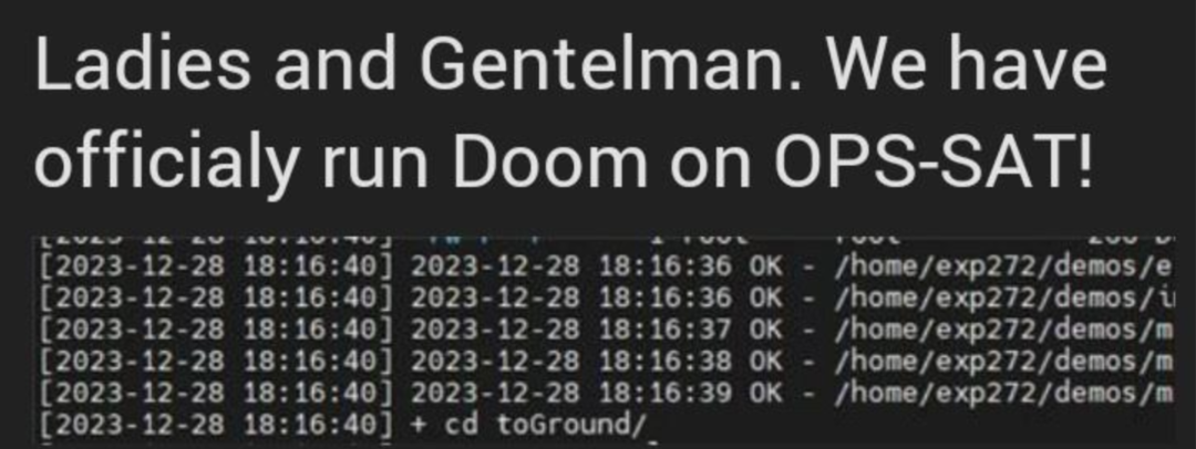 2023-12-28 18:16:36 (UTC) — DOOM 在 OPS-SAT 上于太空运行(初始演示检查)